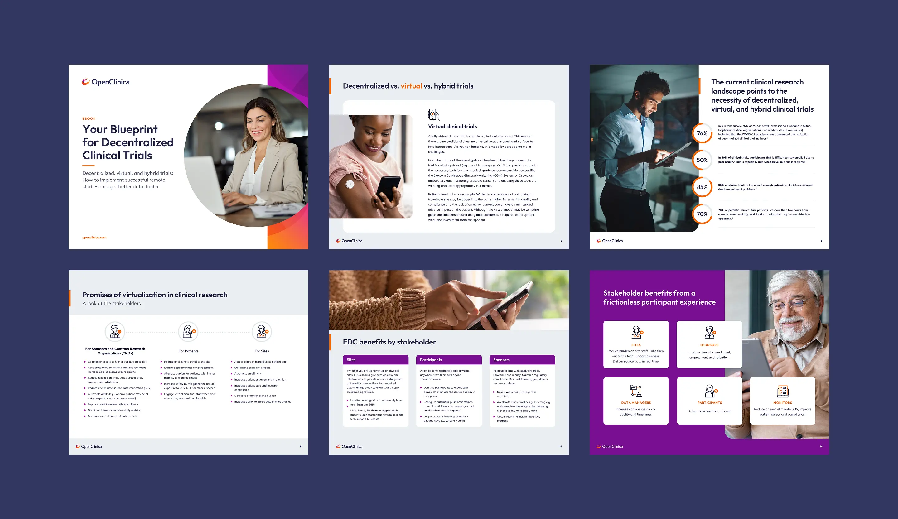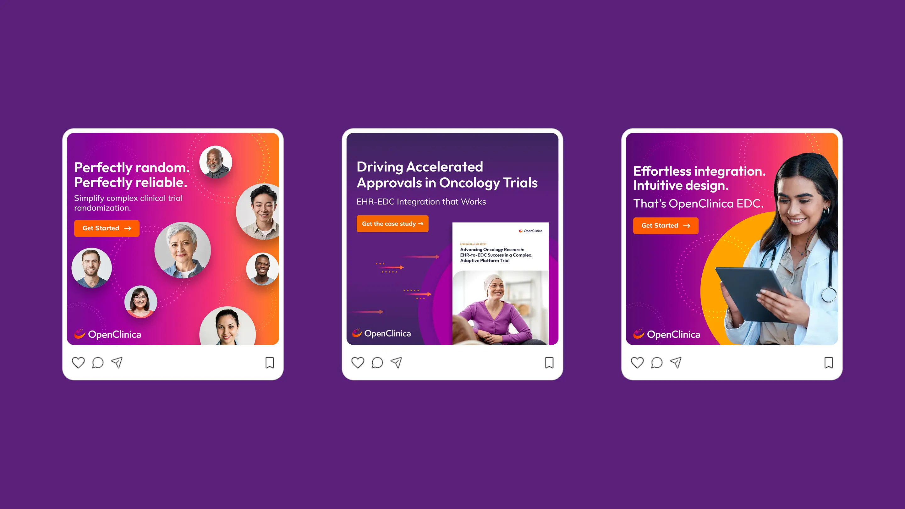 I partnered with OpenClinica, a global leader in clinical trial technology, on a brand refresh. After establishing the updated logo, color palette, and visual system, I worked with their team on an ongoing basis to extend the identity across marketing and digital channels, delivering cohesive, impactful campaigns that reinforced the brand’s presence.